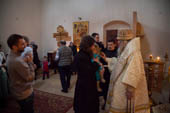 По завершении богослужения, приветствуя владыку, настоятель храма архимандрит Дионисий сказал, что нынешняя Божественная литургия, совершенная архиереем древним богослужебным чином, стоит для единоверческой Покровской общины в ряду знаменательных для них церковных событий начала года. 12 января митрополитом Крутицким и Коломенским Ювеналием в Успенском Патриаршем соборе Московского Кремля в день памяти святителя Макария, митрополита Московского и всея Руси, была совершена Божественная литургия по древнерусскому богослужебному чину в ознаменование столетия Первого Всероссийского единоверческого съезда. В рамках XXI Международных Рождественских образовательных чтений прошла конференция «Старый обряд в жизни Русской Православной Церкви», к которой был проявлен большой интерес в церковных кругах. И, наконец, со 2 по 5 февраля состоялся Освященный Архиерейский Собор, в постановлении которого было уделено внимание деятельности единоверных приходов. В память совместных молитв архимандрит Дионисий преподнес владыке архиерейское кадило.