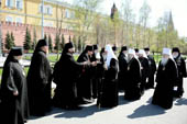 В канун 68-й годовщины Победы в Великой Отечественной войне Предстоятель Русской Церкви и духовенство г. Москвы возложили цветы к могиле Неизвестного солдата у Кремлевской стены