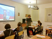 Дети рассказывали в течение урока о житии преподобного Сергия Радонежского, его родителях, о Троице-Сергиевой Лавре. Затем они спели песню «Преподобный отче Сергие…».