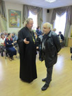 Открыл выставку настоятель храма игумен Симеон (Шевцов). Затем к присутствующим, среди которых было много художников, обратился известный иконописец Александр Чашкин, который отметил высокий уровень иконописного мастерства представленных икон. Своими впечатлениями поделились преподаватель Николо-Угрешской семинарии (дисциплина «Церковное искусство») и ведущая радиопередач на радиостанции «Радонеж» Лидия Константиновна Павлова, преподаватель Московской Православной Духовной Академии игумен Лазарь (Гнатив) и другие.
