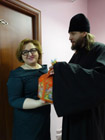 В ходе визита с праздником Пасхи были поздравлены и заведующая филиалом Елена Вадимовна Акмаева, и сотрудники, и посетители. Всем вручили пасхальные куличи и яйца. У всех была радость.