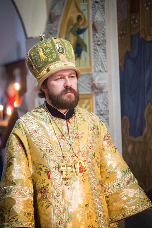 18 апреля, в субботу Светлой седмицы, председатель Отдела внешних церковных связей Московского Патриархата митрополит Волоколамский Иларион совершил древним чином Божественную литургию в храме Покрова Пресвятой Богородицы в Рубцове.