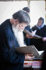 За богослужением хор под руководством Д.А.Григорьева исполнял песнопения древним знаменным распевом.