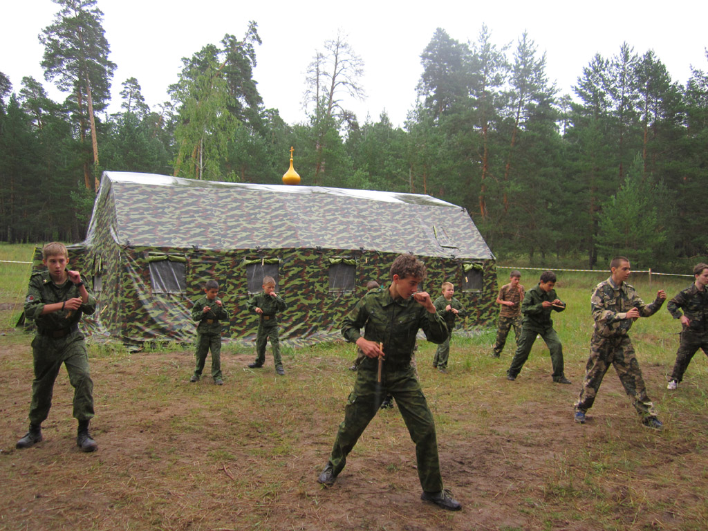 Воспитанники лагеря продемонстрировали свое умение владения оружием (автоматы, пистолеты, ножи). А также показали приемы рукопашного боя по обезоруживанию противника.