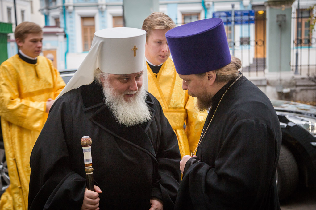 Высокопреосвященнейшему владыке сослужили благочинный Богоявленского округа архимандрит Дионисий, настоятель храма протоиерей Феодор Бородин, настоятель храма в честь иконы Божией Матери Всех скорбящих Радость в городе Друскининкай Виленско-Литовской епархии (Православная Церковь в Литве) протоиерей Владимир Синицын, настоятель храма великомученика Георгия Победоносца в Лучниках протоиерей Алексий Казанчев, настоятель храма Живоначальной Троицы на Грязех протоиерей Иоанн Каледа, настоятель храма святого апостола Иакова Заведеева в Казенной слободе протоиерей Сергий Точеный, клирики храма протоиерей Валерий Буерин и иерей Димитрий Чураков, клирик храма Воскресения Христова в Сокольниках протодиакон Валерий Щеглов, клирик храма Девяти мучеников Кизических диакон Виталий Гасанов и клирик храма Воздвижения Креста Господня в Чистом Вражке диакон Сергий Уваров.