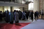 14 ноября клирики Богоявленского благочиния Москвы совершили чин молебного пения перед иконой Божией Матери «Державная», находящейся для поклонения на выставке «Православная Русь. Моя история. От великих потрясений к великой победе». Молебен возглавил настоятель Богоявленского кафедрального собора в Елохове протоиерей Александр Агейкин. Ему сослужили клирики других храмов благочиния: настоятель храма святителя Николая в Дербеневе протоиерей Александр Сычев, настоятель храма преподобного Алексия человека Божия в Красном селе протоиерей Валерий Привалов, клирик храма Трех святителей на Кулишках протоиерей Александр Прокопчук, клирик храма Живоначальной Троицы на Грязех протоиерей Сергий Ковалев. Диаконский чин возглавил клирик Богоявленского кафедрального собора в Елохове протодиакон Николай Платонов, ему помогал клирик храма преподобного Алексия человека Божия в Красном селе диакон Максим Кузнецов.
