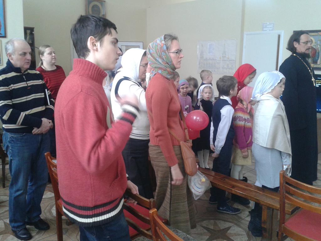 Время, отведенное для Рождественского праздника, прошло быстро для всех присутствующих. После исполнения кондака празднику Рождества Христова, радостные дети получили подарки из рук отца Кирилла.