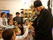 Настоятель сердечно поблагодарил участников спектакля и преподава-телей Воскресной школы, немало потрудившихся для того, чтобы праздник удался. Батюшка вручил детям подарки, а дети, в свою очередь, преподнесли подарки Настоятелю и присутствующим.