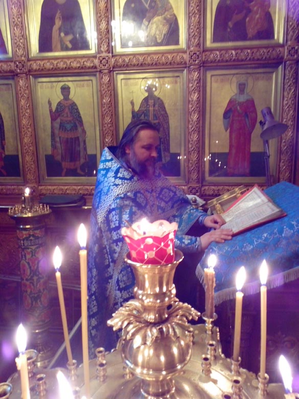 Клирики храмов Богоявленского благочиния несут чреду в Иверской часовне у Воскресенских ворот
