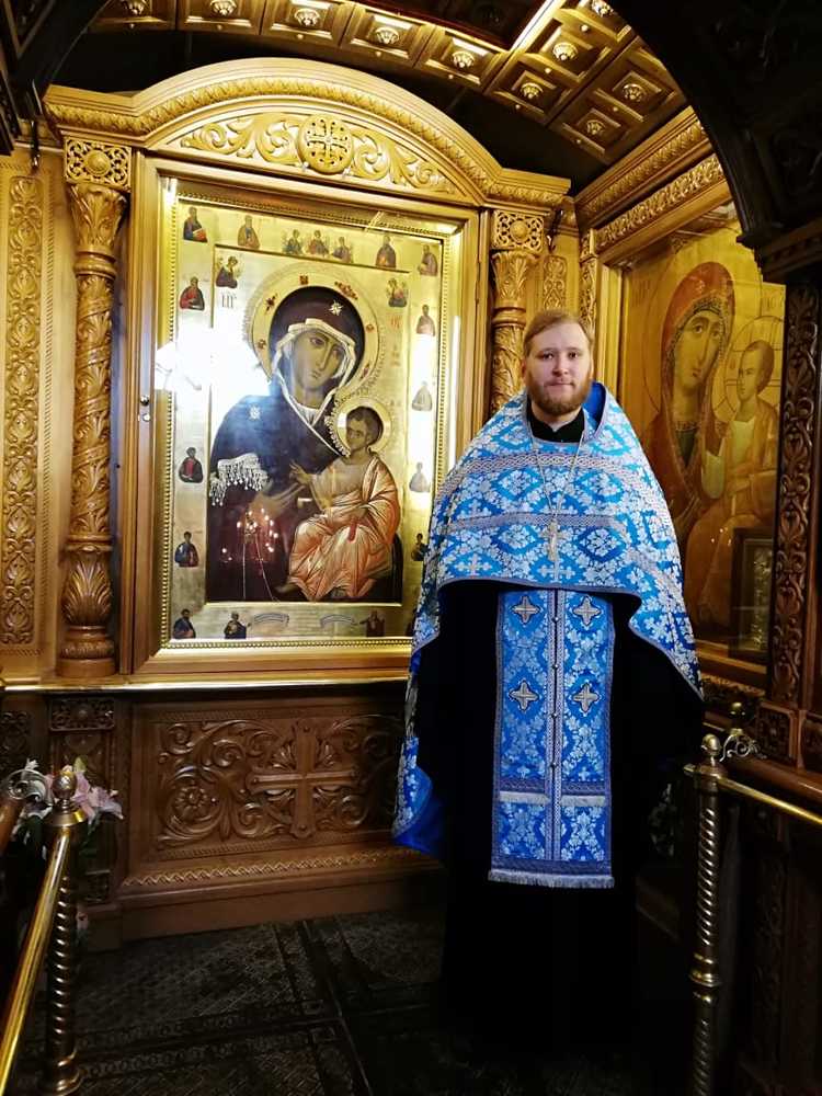 Клирики храмов Богоявленского округа совершают молитву перед образом Царицы Небесной в Иверской часовне