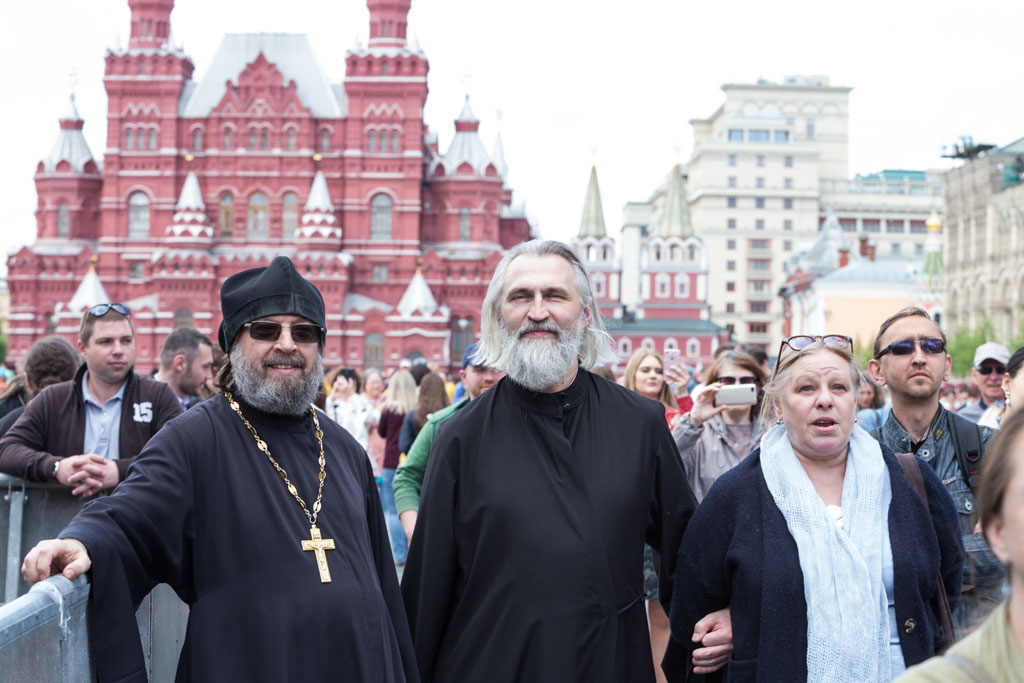 В числе гостей праздника на Красной площади были представители Поместных Православных Церквей, иерархи и священнослужители Русской Православной Церкви, клирики и прихожане храмов Богоявленского благочиния гор. Москвы.