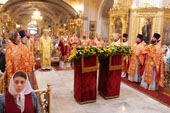 Празднование памяти святителя Московского Алексия в Богоявленском кафедральном соборе в Елохове