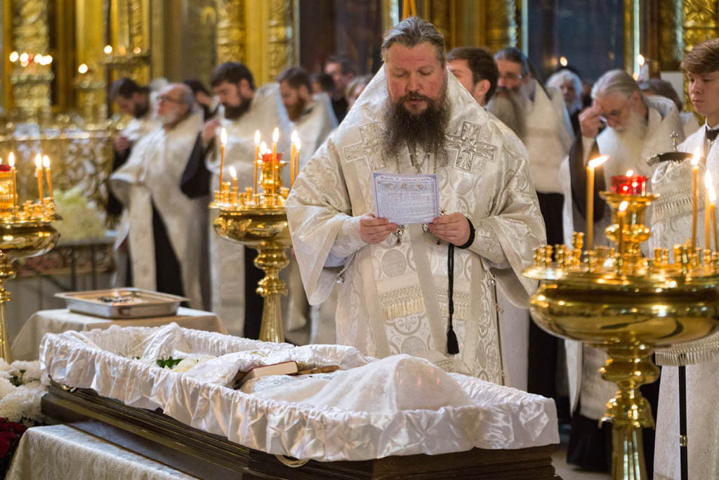 На отпевание прибыли секретарь Святейшего Патриарха Московского и всея Руси по городу Москве протопресвитер Владимир Диваков, ключарь Храма Христа Спасителя протоиерей Михаил Рязанцев, благочинный Петропавловского округа архимандрит Алексий (Вылажанин), благочинный Сретенского округа протоиерей Олег Клемышев, благочинный Троицкого округа протоиерей Георгий Климов, исполняющий обязанности благочинного Иверского округа протоиерей Андрей Речицкий, духовенство города Москвы.