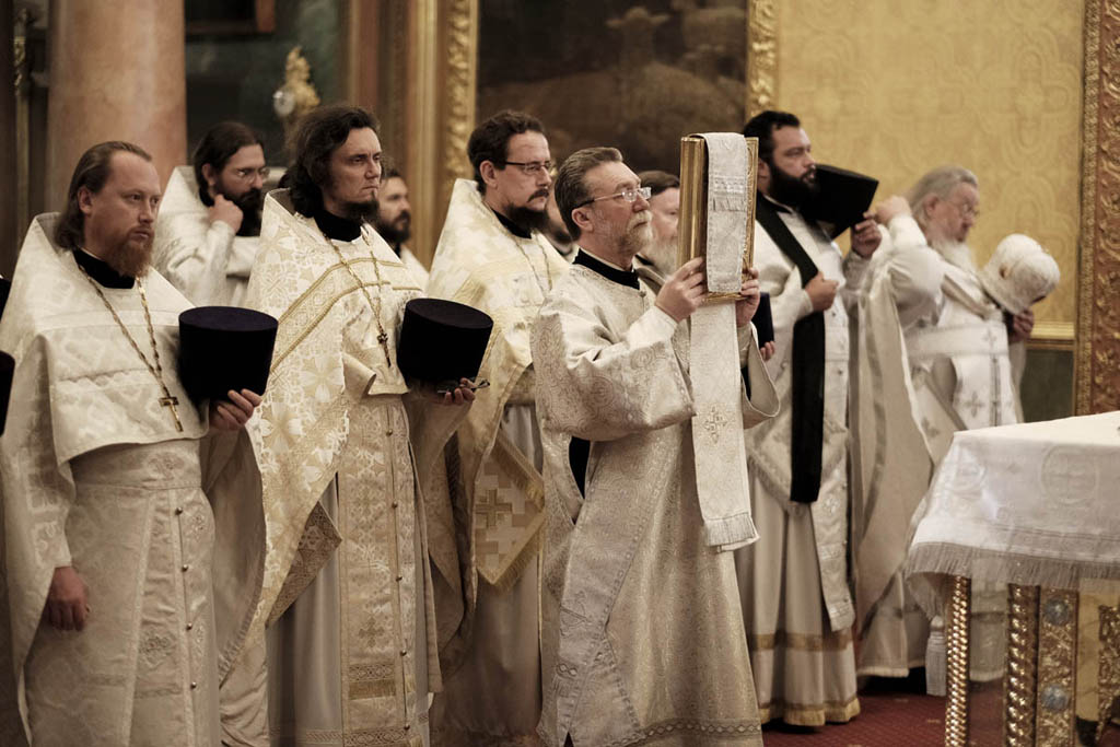 За Литургией Преосвященному владыке сослужили: настоятель Богоявленского кафедрального собора протоиерей Александр Агейкин, благочинный Богоявленского округа протоиерей Сергий Точеный, духовник Центрального викариатства, настоятель храма святителя Николая Клённиках протоиерей Николай Важнов, настоятели и клирики храмов Богоявленского благочиния и собора.