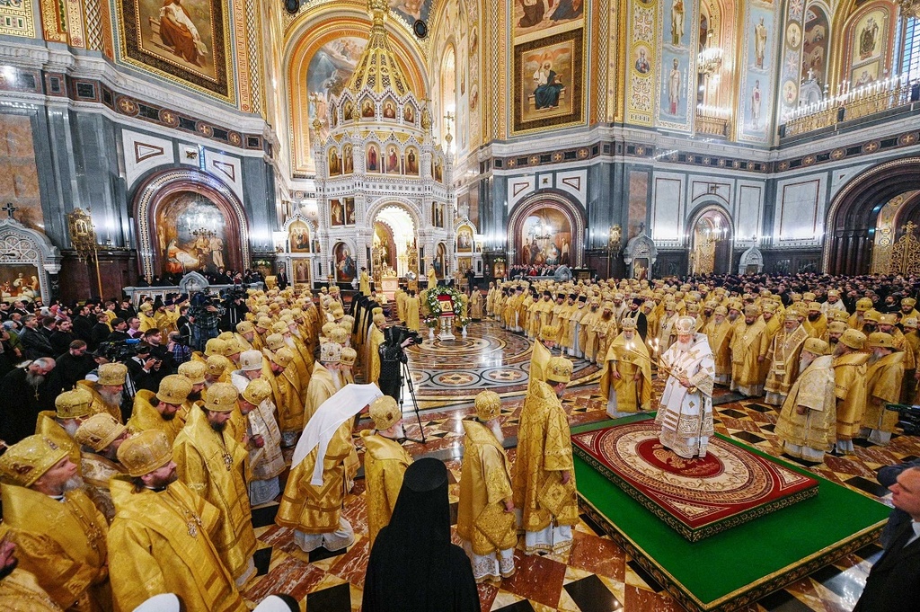 Его Святейшеству сослужили постоянные члены Священного Синода, архиереи и духовенство Поместных Православных Церквей, наместники ставропигиальных монастырей и столичное духовенство.