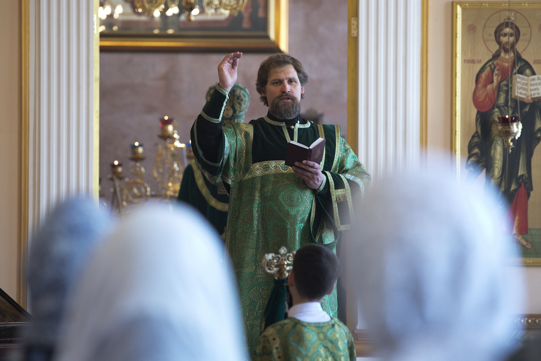 Проповедь перед причастием произнес протоиерей Константин Кобелев, клирик храма святителя Николая Мирликийского в Бирюлёве.