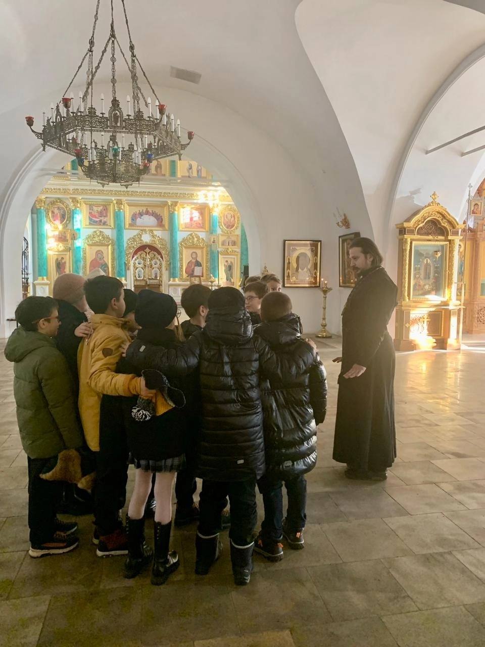 В храме ребят встретит настоятель храма протоиерей Александр Сычёв, а провел урок иерей Александр Гумеров.