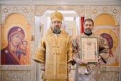 По благословению Святейшего Патриарха Кирилла митрополит Воскресенский Григорий вручил Патриаршие награды за помощь в восстановлении храма св. Константина и Елены в Фанагорийских казармах: ордена св. князя Даниила Московского III степени удостоен ректор МГТУ им. Баумана М.В. Гордин, медалью ордена прп. Сергия Радонежского награжден иерей Дмитрий Данилов, Патриаршие грамоты вручены С.Д. Минееву и диакону Антонию Жарову, клирику храма Живоначальной Троицы на Грязех у Покровских ворот.